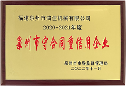 喜訊!鴻佳機(jī)械同時(shí)榮獲泉州市、南安市2020-2021年度“守合同重信用企業(yè)”榮譽(yù)稱(chēng)號(hào)